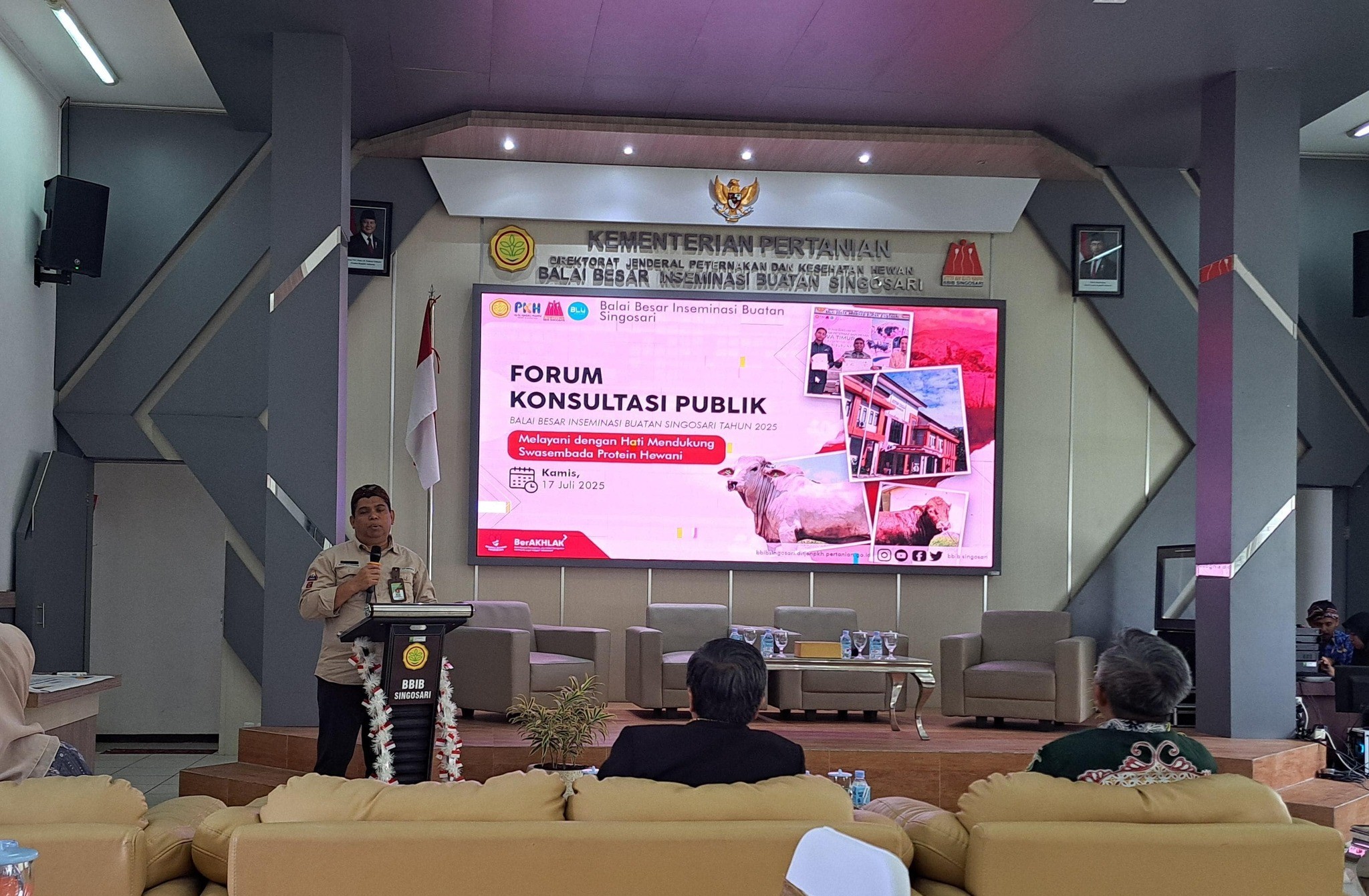 Singosari—Kementerian Pertanian (Kementan) kembali menunjukkan komitmennya dalam peningkatan layanan publik prima. Langkah ini dibuktikan melalui pelaksanaan forum komunikasi publik bertema “Melayani dengan Hati, Mendukung Swasembada Protein Hewani” oleh Balai Besar Inseminasi Buatan (BBIB) Singosari, salah satu unit pelaksana milik Direktorat Jenderal Peternakan dan Kesehatan Hewan (Ditjen PKH).