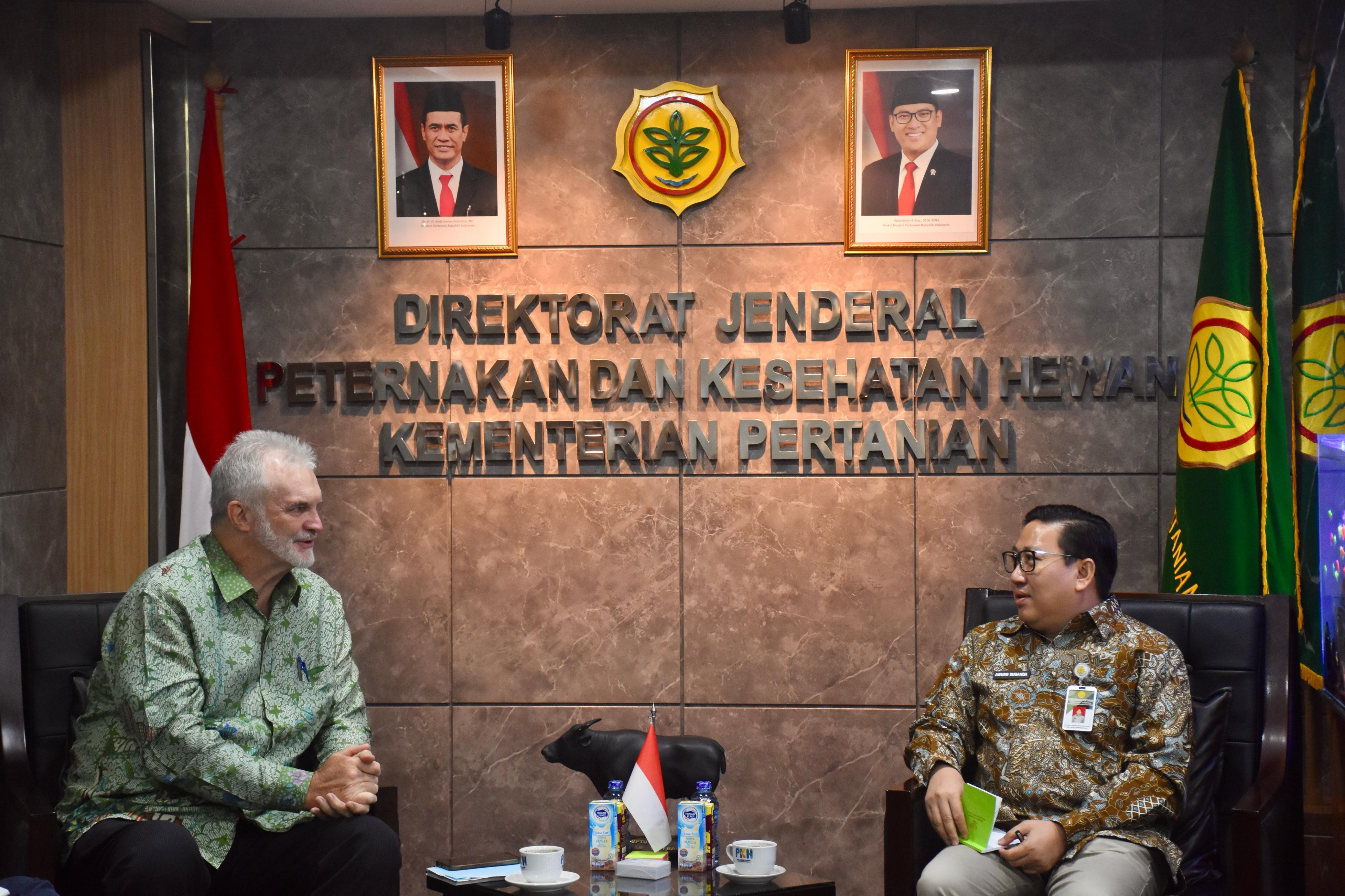 Jakarta — Hubungan Indonesia dan Australia di bidang peternakan dan kesehatan hewan kian erat menyusul kunjungan kehormatan Minister Counsellor (Agriculture) Kedutaan Besar Australia yang baru, Andrew O’Sullivan, ke Direktorat Jenderal Peternakan dan Kesehatan Hewan (Ditjen PKH), Kementerian Pertanian(29/4).