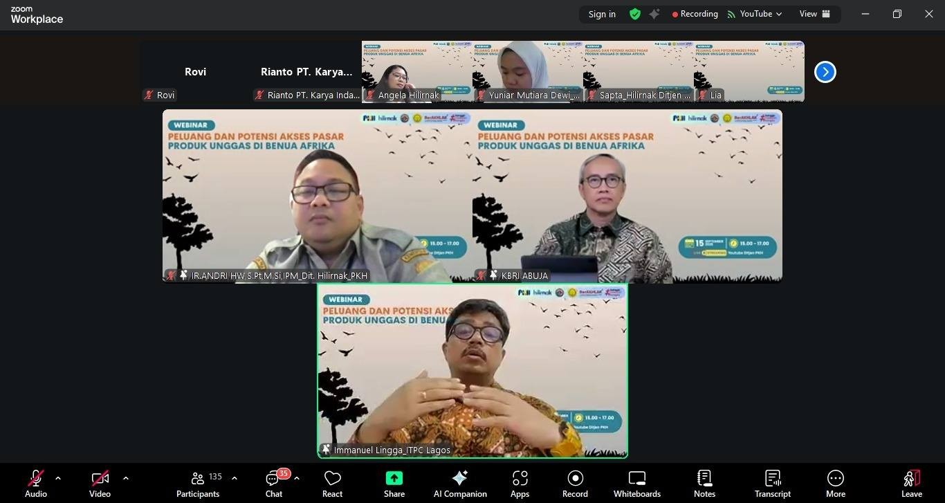 Sementara itu, Duta Besar RI untuk Senegal merangkap Pantai Gading, Ardian Wicaksono, menekankan bahwa tren pertumbuhan kelas menengah dan urbanisasi di Afrika Barat semakin mendorong konsumsi protein hewani. Pantai Gading, misalnya, mencatat peningkatan konsumsi daging unggas yang diproyeksikan terus naik hingga 2030. “Senegal dan Pantai Gading menunjukkan prospek positif. Permintaan protein hewani meningkat seiring daya beli masyarakat yang membaik. Ini kesempatan bagi Indonesia untuk memperluas ekspor, baik produk unggas segar maupun olahan,” kata Ardian.