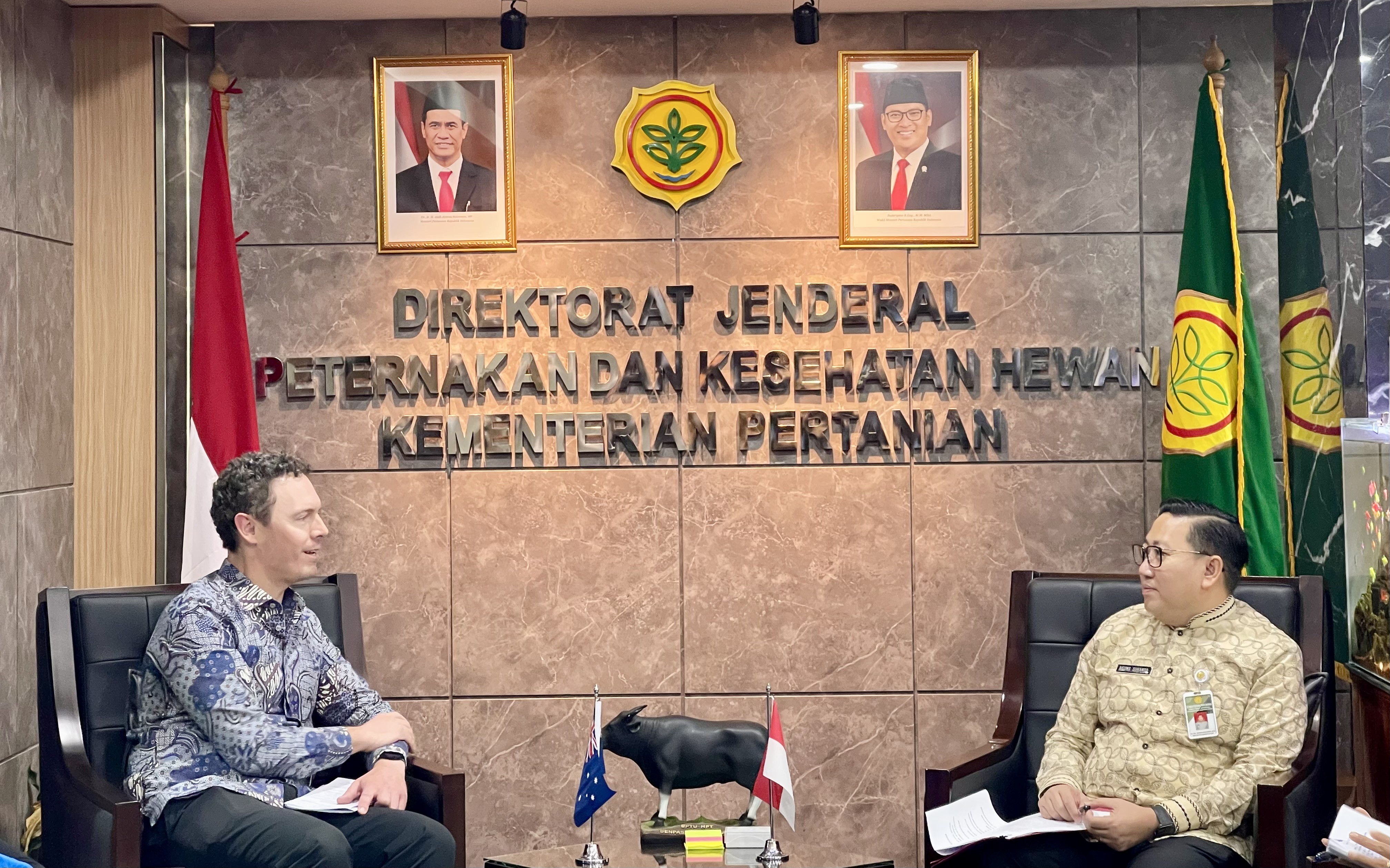 Delegasi Australia yang dipimpin oleh Tim Stapleton, Menteri-Konselor bidang Ekonomi, Investasi, dan Infrastruktur Kedutaan Besar Australia di Indonesia, menyampaikan komitmennya untuk terus mendukung subsektor peternakan Indonesia melalui berbagi pengetahuan, peningkatan kapasitas teknis, serta pengembangan program berbasis riset. Salah satu inisiatif baru yang akan diluncurkan adalah program “Kesehatan untuk Semua,” yang akan berjalan selama delapan tahun dengan anggaran 100 juta dolar Australia.