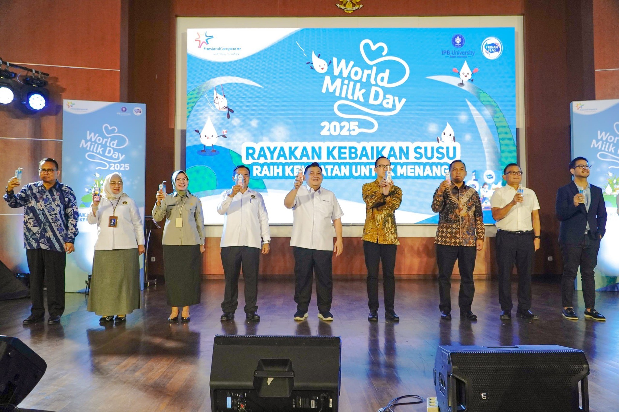 Bogor – Bertepatan dengan Hari Susu Sedunia, Kementerian Pertanian (Kementan) bersama Frisian Flag Indonesia (FFI) mengedukasi generasi muda akan pentingnya konsumsi susu dan gizi seimbang dalam gelaran program Goes to Campus di IPB University, Dramaga, Senin (2/6).