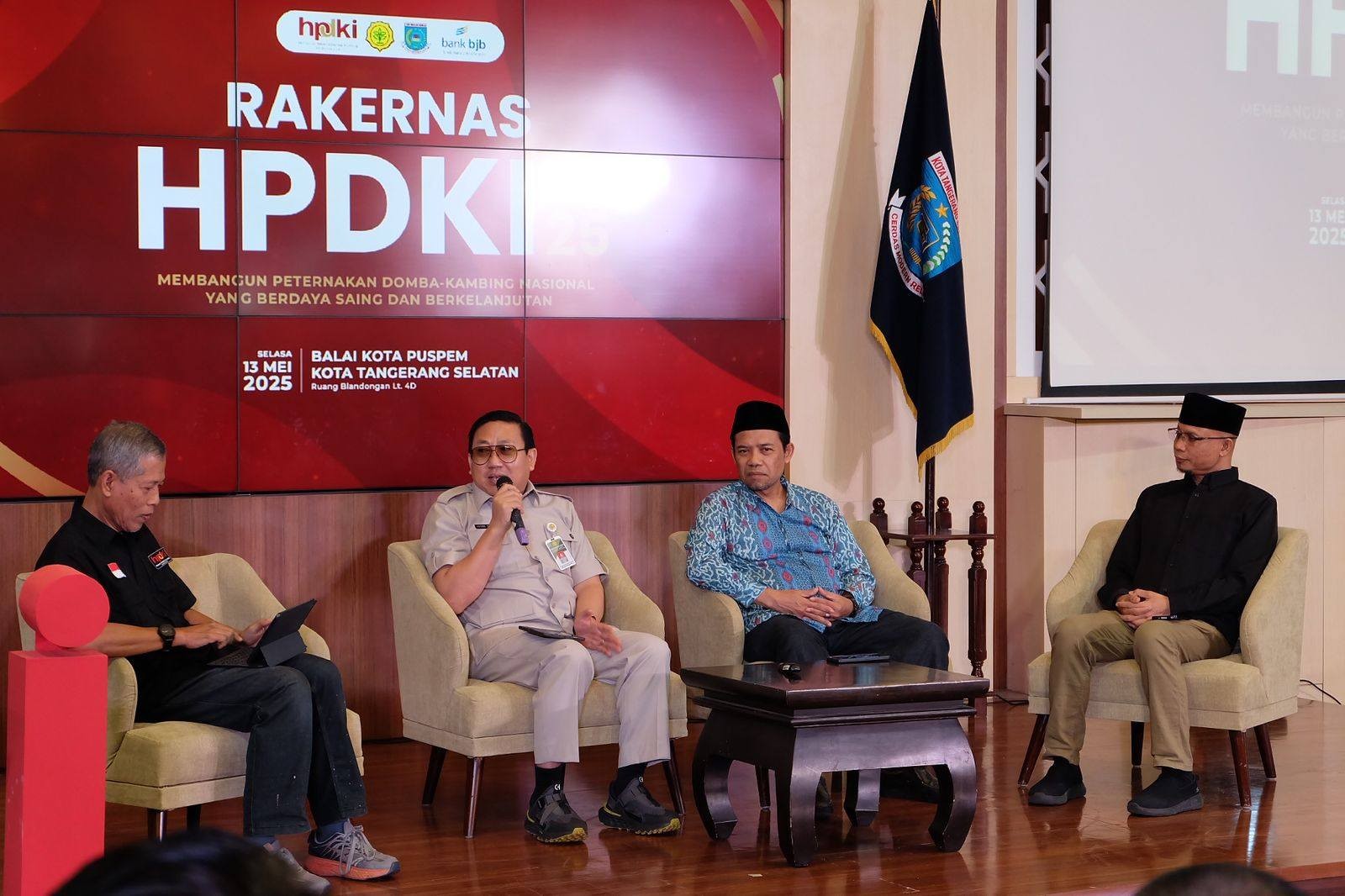 Tangerang Selatan - Kementerian Pertanian (Kementan) menegaskan komitmennya untuk terus mendorong hilirisasi dalam pembangunan peternakan domba-kambing nasional yang berdaya saing dan berkelanjutan. Dalam Rapat Kerja Nasional (Rakernas) Himpunan Peternak Domba Kambing Indonesia (HPDKI) yang digelar di Tangerang Selatan, Selasa, 13 Mei 2025, Kementan menekankan pentingnya peran peternak dalam rantai nilai industri ternak nasional.
