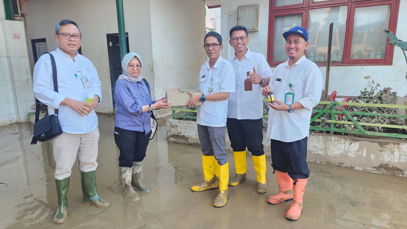 Di Rumah Potong Hewan Ruminansia (RPHR) Harapan Baru, Kota Bekasi, selain memastikan kondisi ternak tetap sehat, Kementan mendistribusikan disinfektan, obat-obatan, vitamin, dan perlengkapan medis untuk mencegah penyebaran penyakit pascabanjir.