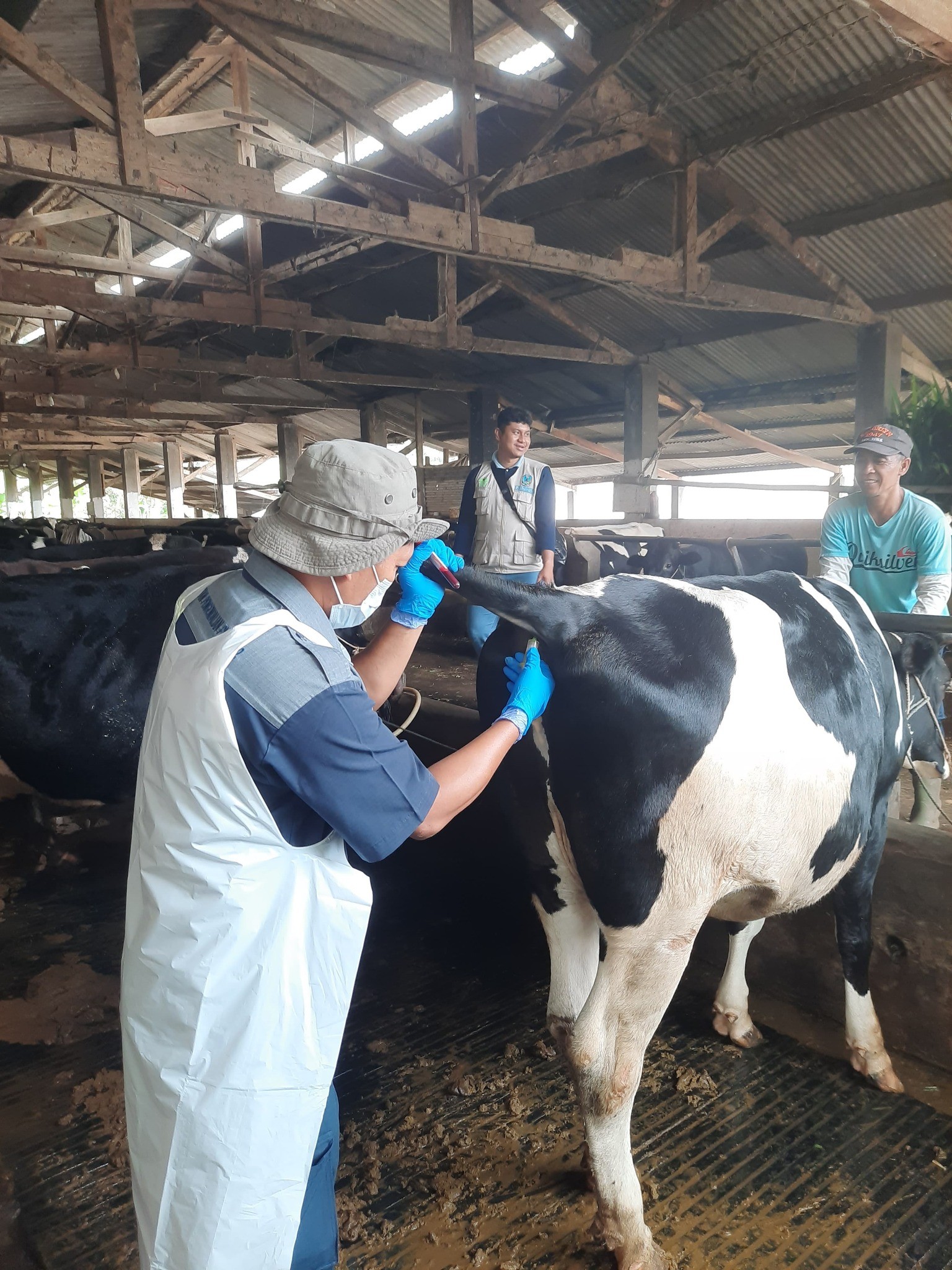 Surveilans dilakukan dengan pengambilan berbagai sampel dari sapi perah milik anggota koperasi, termasuk serum darah, darah EDTA, dan swab nasofaring. Sampel diambil dari ternak berbagai kelompok umur, termasuk ternak yang menunjukkan gejala klinis seperti keguguran (abortus) serta diduga (suspect) LSD dan PMK.