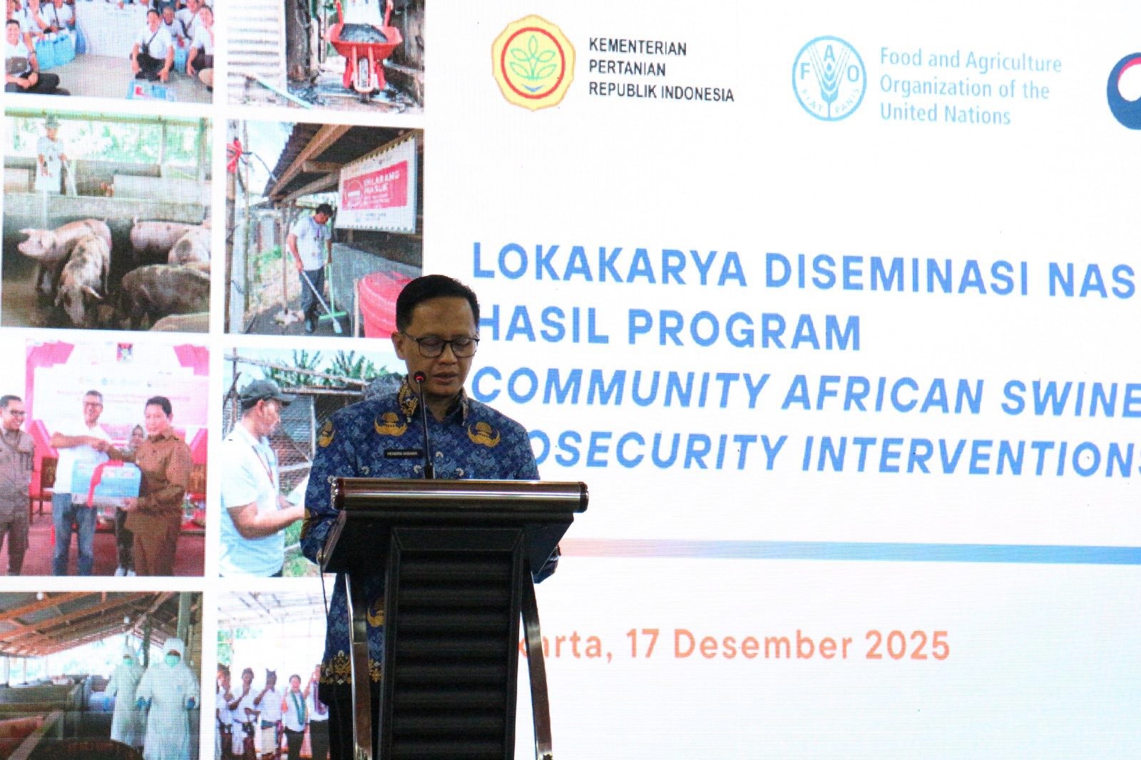 Jakarta - Kementerian Pertanian (Kementan) bersama Food and Agriculture Organization (FAO) Indonesia menggelar lokakarya diseminasi pelaksanaan Program Community African Swine Fever Biosecurity Interventions (CABI) pada Rabu (17/12/2025), sebagai upaya memperkuat pengendalian Demam Babi Afrika pada peternakan babi skala kecil.