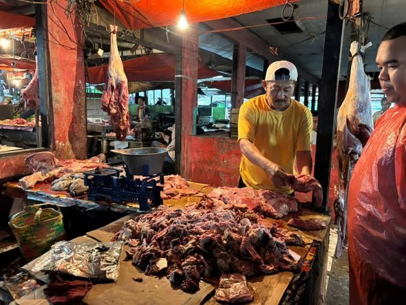 Berdasarkan data di lapangan, terdapat sembilan lapak daging sapi, 25 lapak daging ayam, dan sekitar 10 lapak telur yang aktif berjualan di pasar tersebut. Permintaan tertinggi selama Ramadan tercatat pada komoditas ayam dan telur, meskipun kenaikannya masih relatif terkendali.