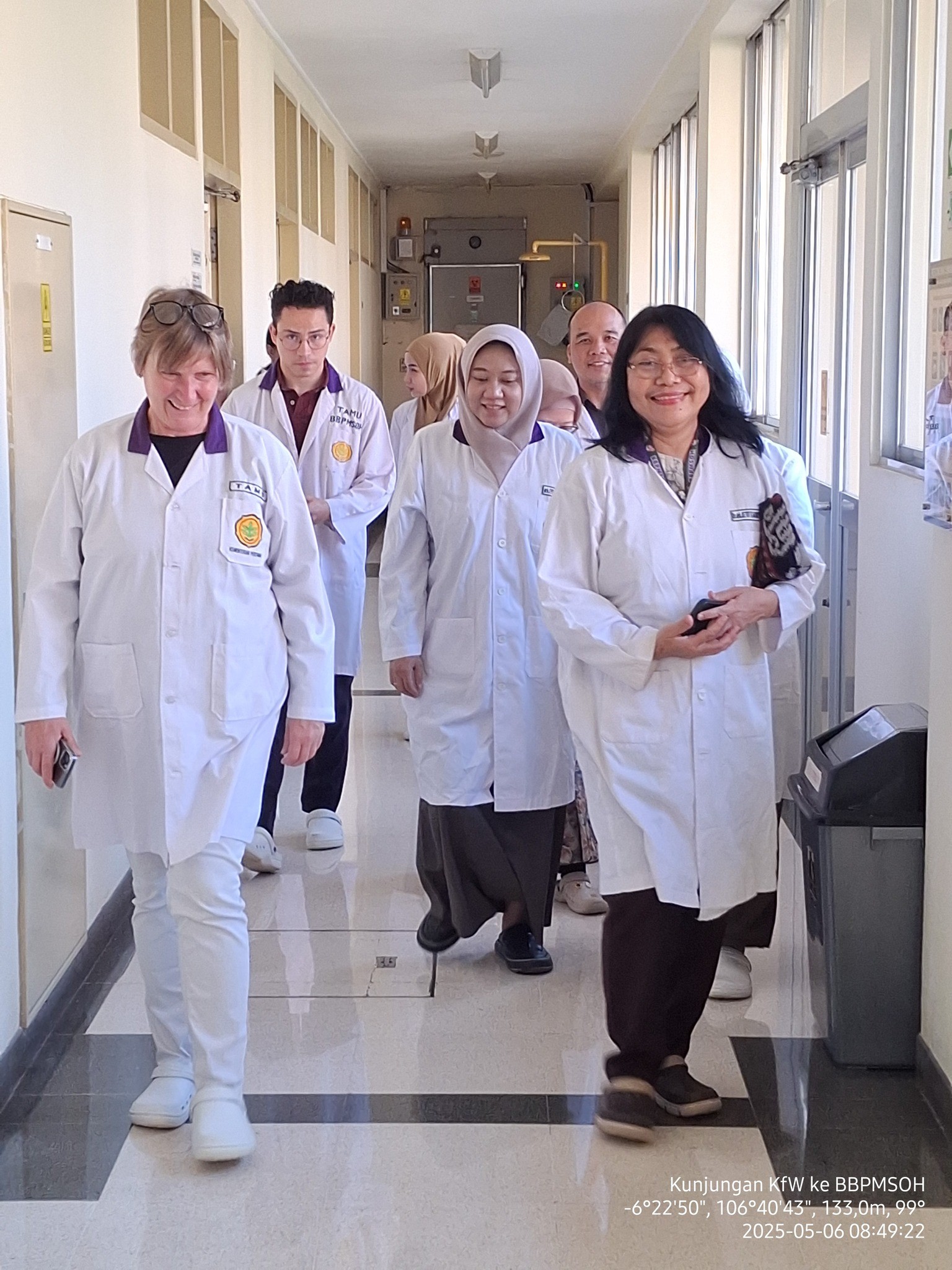 Delegasi KfW yang dipimpin Bettina Uzt melakukan peninjauan langsung ke laboratorium virologi, bakteriologi, dan farmasetik BBPMSOH, termasuk fasilitas BSL-3 yang menjadi pusat pengujian vaksin AI di Indonesia. Dalam kesempatan tersebut, Bettina menyampaikan apresiasi atas kebersihan dan kerapihan fasilitas yang dinilainya masih terjaga dengan baik meskipun telah beroperasi hampir satu dekade. Ia menekankan pentingnya pemeliharaan alat serta keberlanjutan operasional laboratorium berstandar tinggi tersebut.