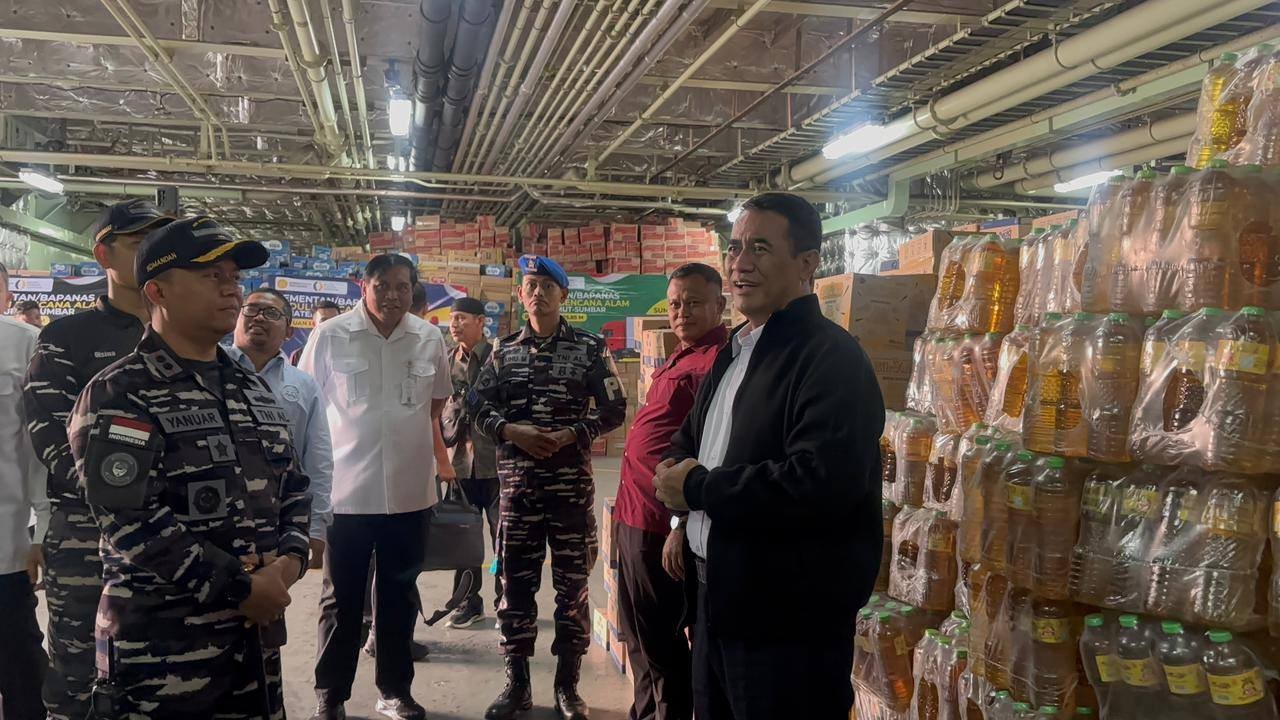 Jakarta - Menteri Pertanian (Mentan) Andi Amran Sulaiman melepas keberangkatan bantuan pangan "Kementan Peduli Bencana" untuk korban banjir di Aceh, Sumatera Utara, dan Sumatera Barat di Dermaga Kolinlamil, Pelabuhan Tanjung Priok, Jakarta, Jumat (5/12/2025). Mentan telah tiba pukul 05.35 WIB untuk memastikan 207 truk bantuan pangan yang akan dikirimkan dengan KRI Banda Aceh 593 menuju pelabuhan terdekat di wilayah terdampak.