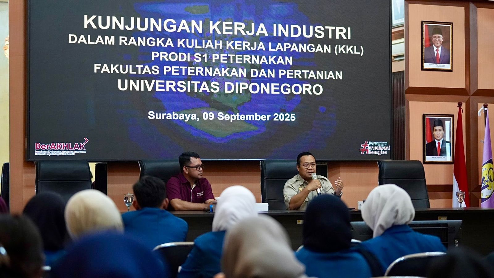 Surabaya - Balai Besar Veteriner Farma Pusvetma (BBVF Pusvetma) Kementerian Pertanian Republik Indonesia berbagi wawasan dan pengetahuan dengan Universitas Diponegoro. Sebanyak 45 mahasiwa Program Studi S1 Peternakan didampingi dua dosen mengunjungi Balai Besar Veteriner Farma Pusvetma (BBVF Pusvetma), Selasa (09/09).