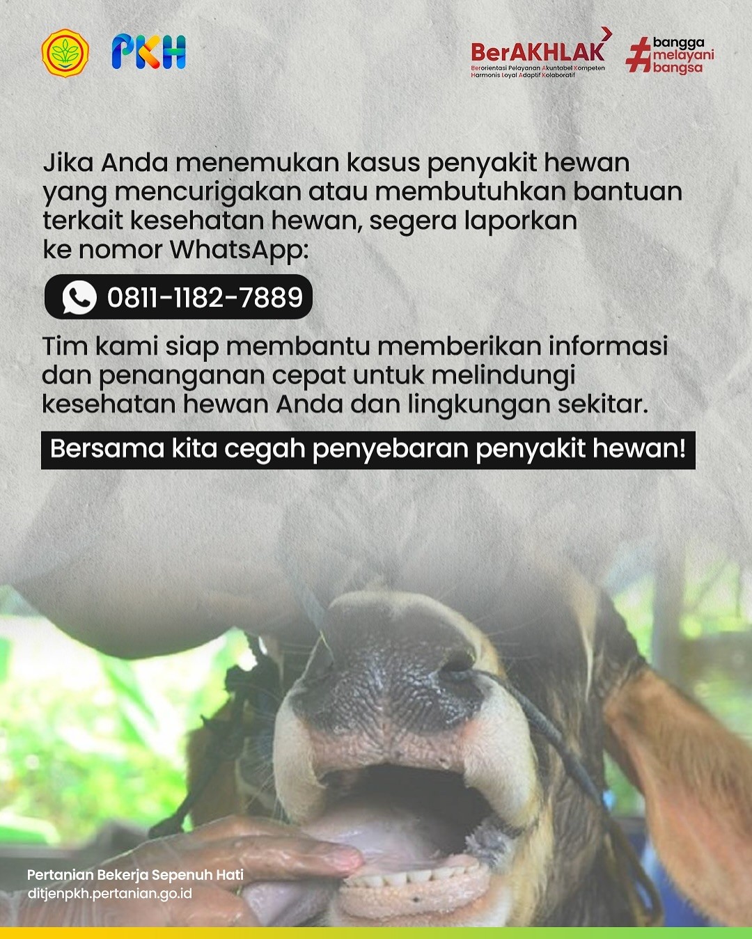 Buku Panduan Vaksinasi Penyakit Mulut dan Kuku untuk Petugas Lapang Tahun 2025 dapat diakses disini.